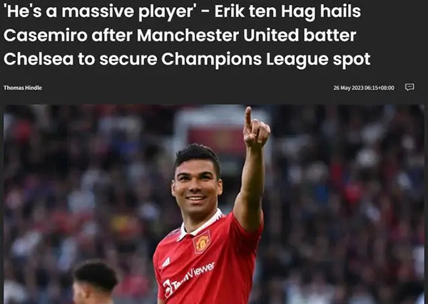 JRS直播网05月26日凌晨3:00,2022-23赛季英超联赛第32轮补赛,曼联4-1战胜切尔西后,曼联主教练腾哈格对卡塞米罗大加赞赏。
