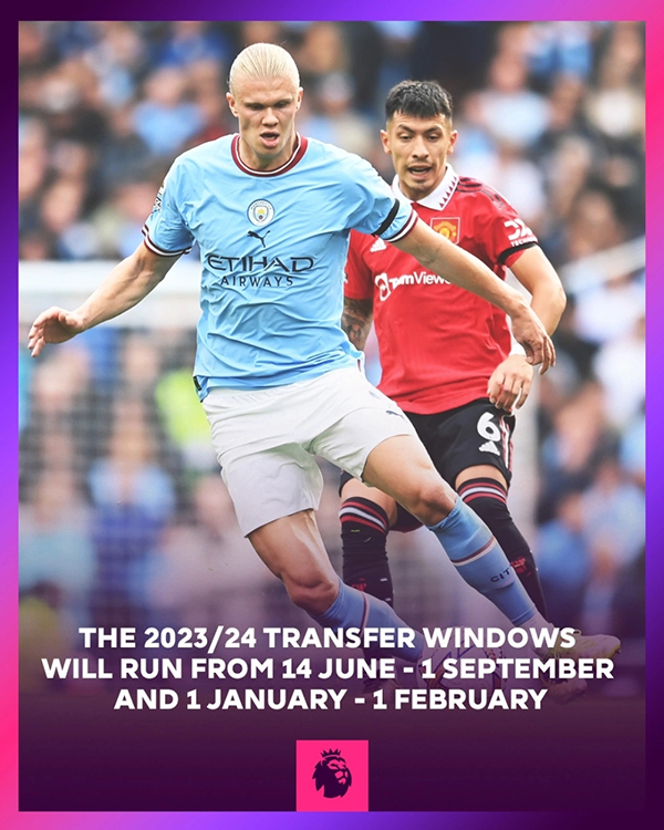 JRS直播网讯05月25日,英超联赛官方发布2023英超夏窗和2024英超冬窗日期。