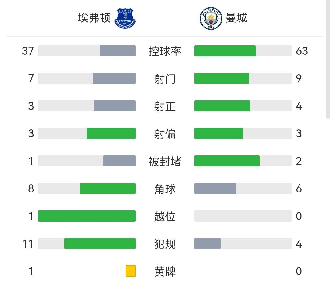 关键事件: 第37分钟,马赫雷斯右路传中,京多安停球后巧射得手,曼城1-0埃弗顿。