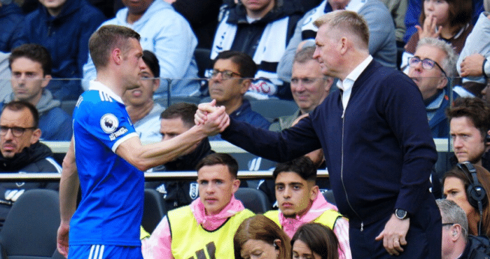 然而在第35轮对阵中游位置的富勒姆时,莱斯特城彻底被打懵了,一套强阵再次攻守萎靡。莱斯特城全队身价达到了4.4亿欧元,仍算得上英超强队的配置,但是缺乏活力,士气低迷;富勒姆全队身价只有2.5亿欧元。莱斯特城主帅迪恩-史密斯安排4231的阵容体系,瓦尔迪出任单箭头,巴恩斯、麦迪逊、普拉埃特搭档三前卫,苏马雷、蒂勒曼斯搭档双后腰,维克托-克里斯蒂安森、瑟云聚、费斯、卡斯塔涅搭档四后卫,门将丹尼尔-艾弗森。