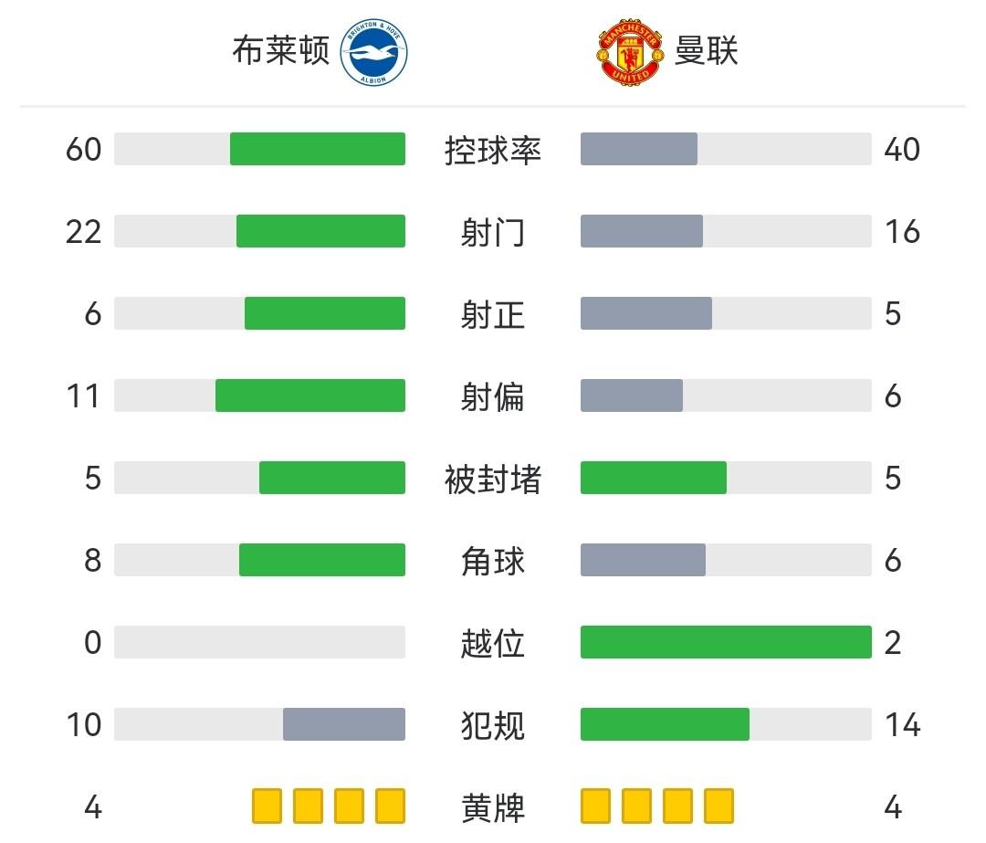 全场比赛结束,曼联0-1布莱顿仍排第四!