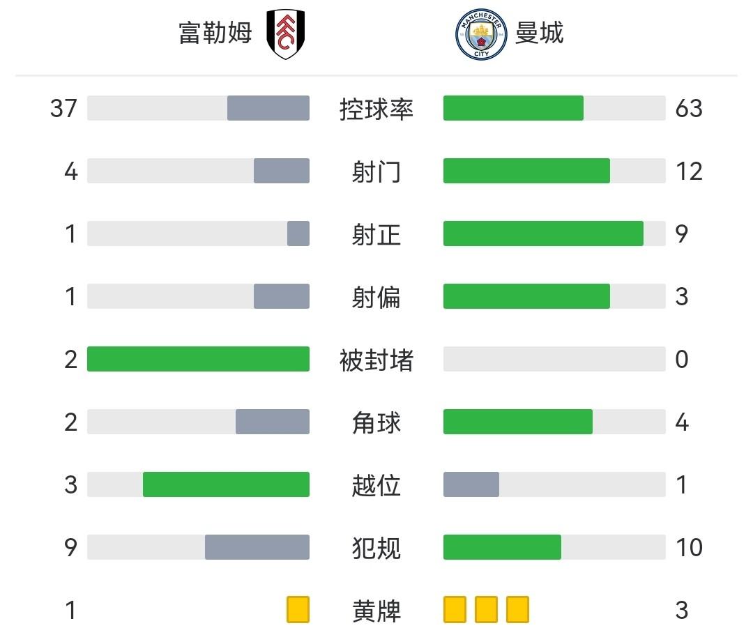 关键事件: 第2分钟,格拉利什左路传至后点,马赫雷斯摆渡,阿尔瓦雷斯禁区内被里姆踢倒,主裁判判罚点球。第3分钟,哈兰德主罚点球命中打入赛季50球,曼城1-0领先富勒姆,他也以34球追平英超单赛季进球纪录。