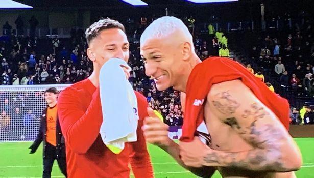 不仅诈伤拖时间,安东尼赛后还再次引发了曼联球迷的愤怒。在曼联其他队友都因为被逼平感到失落时,安东尼竟然与热刺阵中的理查利森开心交谈并且交换球衣。两位巴西国家队队友与其他球员失望的神情,形成鲜明对比。