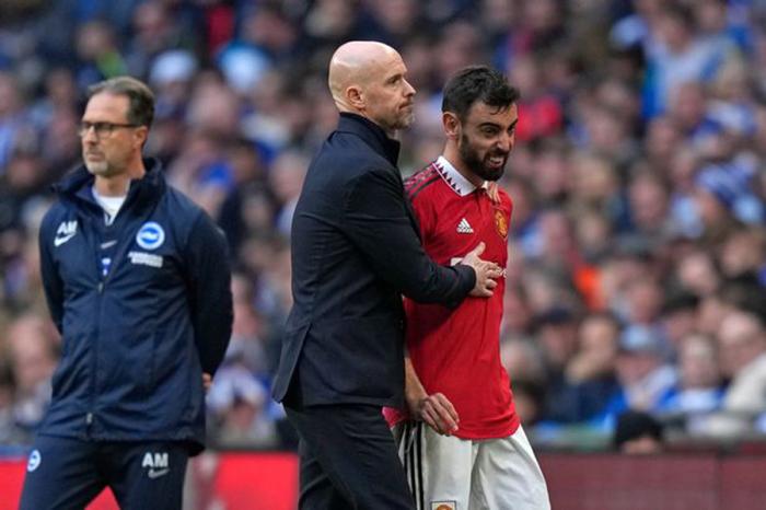 JRS直播网讯04月24日曼联队长布鲁诺·费尔南德斯在足总杯半决赛对布莱顿的比赛中没能坚持到最后,他上半场发挥出色,多次威胁到海鸥军团的球门。然而,他不幸遭遇脚踝受伤,让其下半场的发挥下滑,甚至没能像平时那样大范围跑动。加时赛中,B费更是被提前换下,这是不寻常的做法,因为比赛很可能进入点球大战,葡萄牙中场是球队头号点球手。