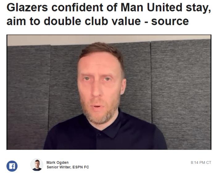 ESPN报道称,尽管谢赫贾西姆和拉特克里夫确认了报价,但曼联的潜在买家对格雷泽家族完全出售的真实性表示怀疑,认为乔尔和阿夫拉姆渴望留在俱乐部。消息人士披露,乔尔和阿夫拉姆认为,曼联未来几年在球场成绩和商业运营上的增长潜力,可以使俱乐部的价值至少达到100亿英镑(124亿美元)。随着转播收入节节上升、媒体关注度持续火爆以及曼联球队未来的夺冠等增长因素,曼联高层的观点认为,通过球场内外的适当投资,价值可以大幅度提升,甚至达到翻倍。