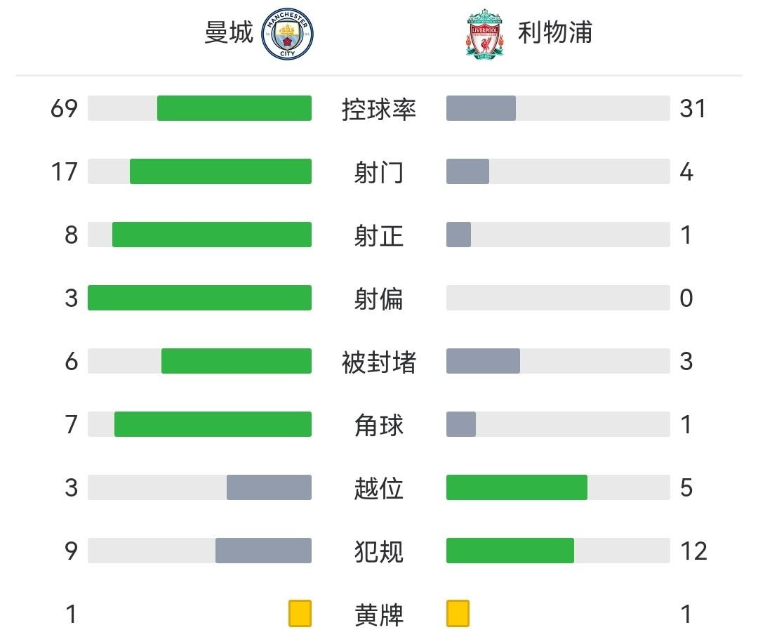 第74分钟,格拉利什接到队友长传,给德布劳内送了一脚直塞,后者得球倒三角回传,格拉利什跟进一脚铲射,阿利森碰到了球但无力阻止皮球入网,曼城4-1利物浦。
