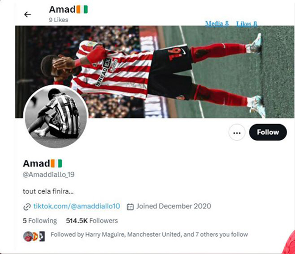JRS直播网03月12日讯曼联4000万欧元边锋阿马德·迪亚洛疑似成为新一名与滕哈格闹翻的球员,他在社媒删除了所有与红魔有关的内容,并且更改了自己的个人资料,还写下一段意味深长的简介。