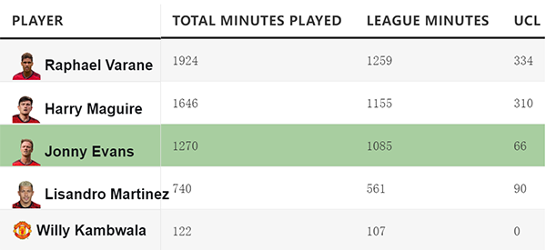 埃文斯在英超的出场时间却占到了总时间的43%,很少有人预料到,原本应该是曼联第五中卫的球员变得如此重要!要知道,去年他回到曼联只是为了参与训练保持状态,最后滕哈格签下他时,出发点也是为更衣室增加一名有经验的老将而已,他的工资是全队最低的之一,外界绝对没想到其将发挥这么大的作用。