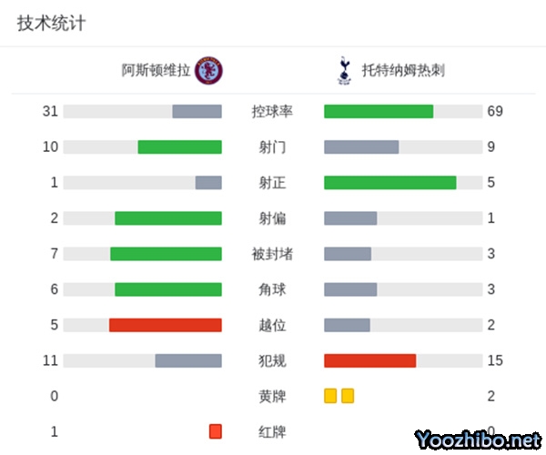 热刺4-0十人维拉 孙兴慜2传1射麦金恶意犯规染红