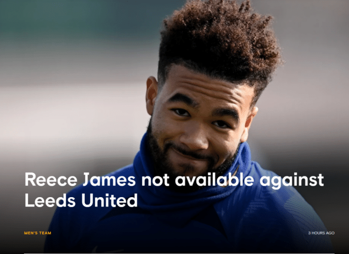 JRS直播网讯03月05日切尔西俱乐部官方宣布,里斯·詹姆斯无法在对阵利兹联的比赛中出场。