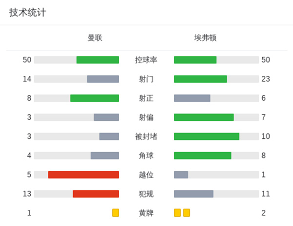 曼联2-0埃弗顿 加纳乔两造点埃弗顿全场浪射23脚