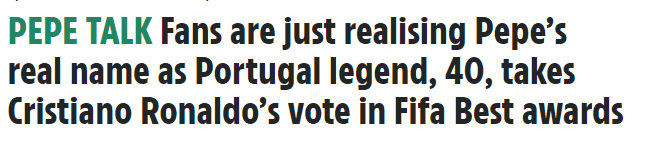 JRS直播网讯03月01日据英国媒体《太阳报》报道,C罗没有参加国际足联年度最佳评选的投票,是因为佩佩被选为葡萄牙新队长。