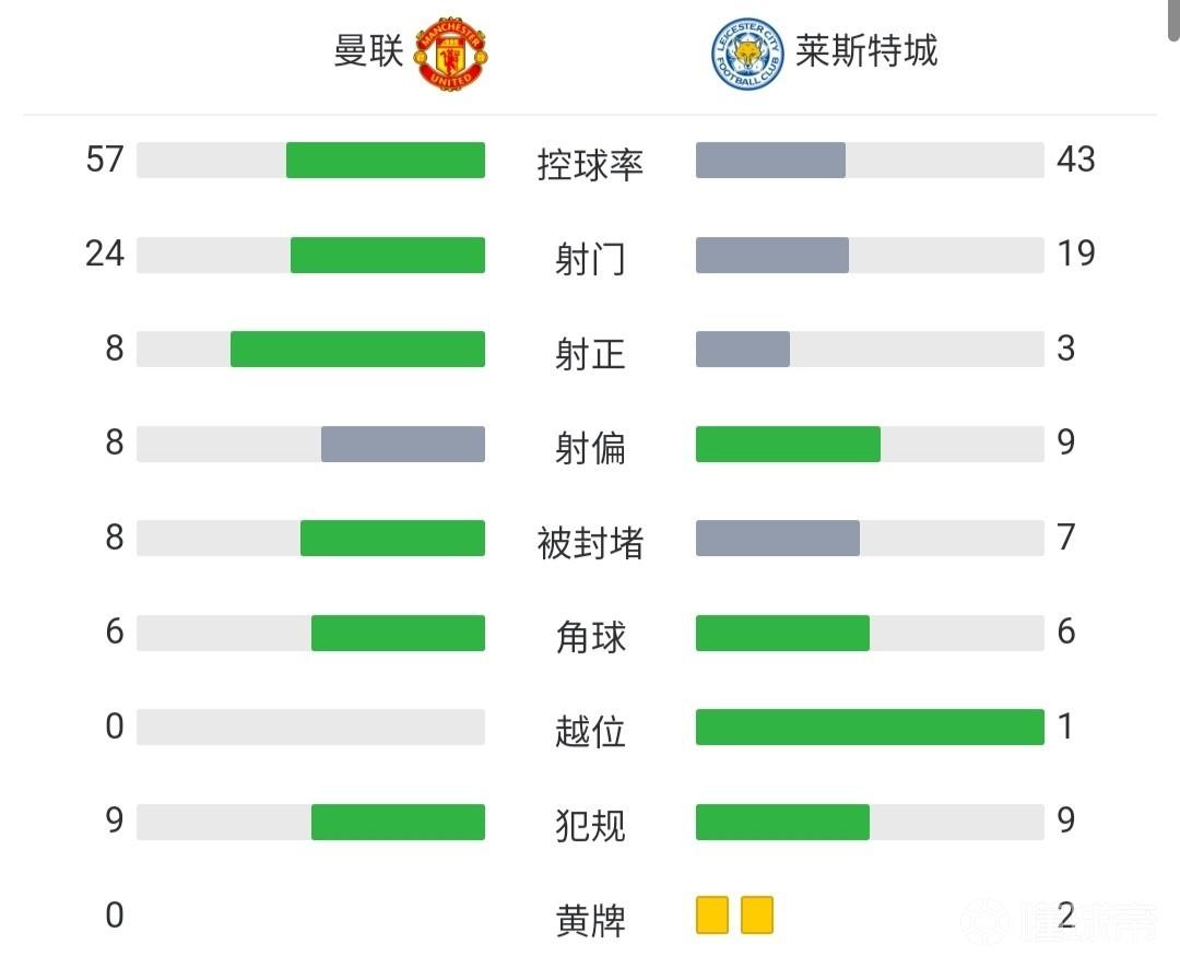 全场比赛结束,最终曼联3-0击败莱斯特城。