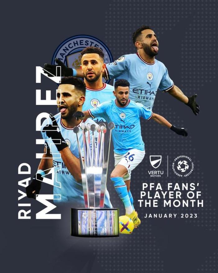JRS直播网02月18日,PFA官方宣布,曼城球员马赫雷斯当选球迷票选英超一月最佳球员。