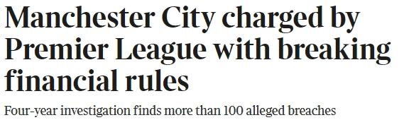 JRS直播网讯02月07日,据英国媒体《泰晤士报》报道,曼城目前面临100多项指控,最坏的结果可能被逐出英超。