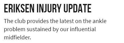 在此前进行的足总杯1/16决赛曼联3-1战胜雷丁的比赛中,埃里克森被对方中锋安迪-卡罗尔剪刀脚放倒,随后他无法坚持被替换下场。