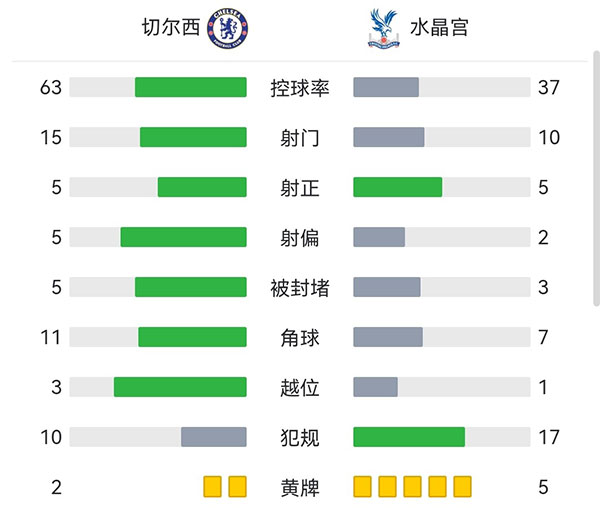 全场比赛结束,最终切尔西1-0击败水晶宫。