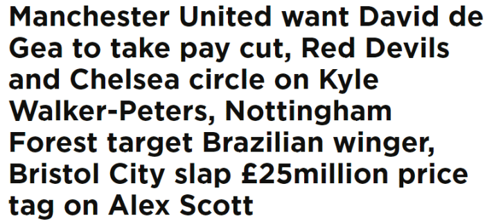 该媒体表示,曼联不打算激活德赫亚合同中续约1年的条款并维持他35万镑的周薪,他们希望与德赫亚令签一份长约,并将他的周薪下调至20万镑。曼联目前希望严格控制球员的薪水,不希望有人的薪水大幅度高于其他队友。
