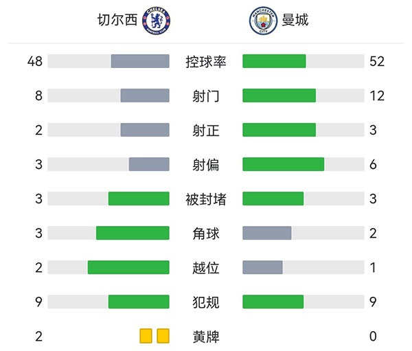 全场比赛结束,最终切尔西0-1不敌曼城。