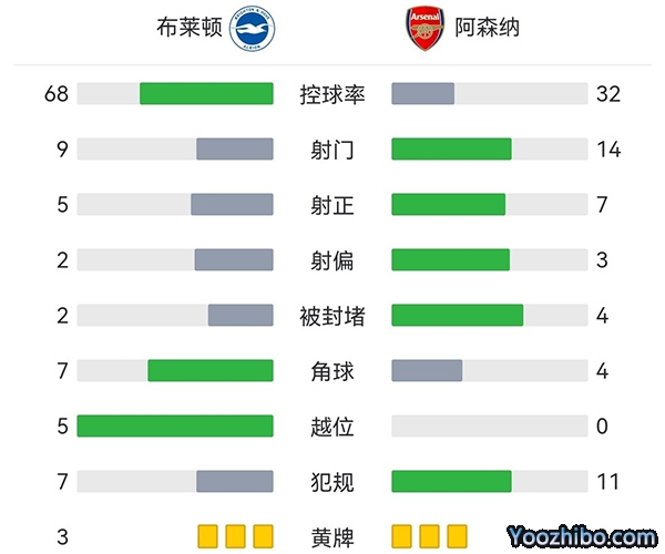 全场比赛结束,最终阿森纳4-2击败布莱顿。
