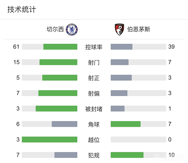 全场比赛结束,最终切尔西2-0伯恩茅斯!