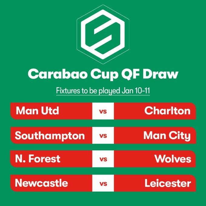 JRS直播网12月23日讯 今天凌晨,联赛杯8强对阵抽签结束,曼联对阵查尔顿竞技,曼城将战南安普顿。