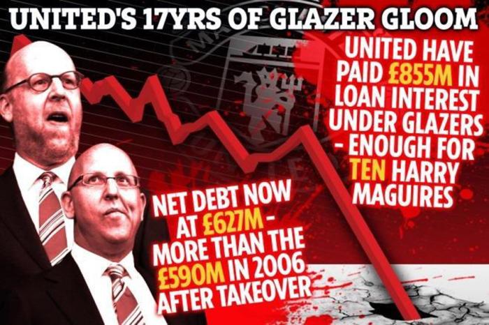 自从2005年已故的马尔科姆·格雷泽借贷完成收购俱乐部,17年以来格雷泽家族从未向曼联投入过自己的一分钱,却以分红、还债和利息等方式,导致俱乐部失去超过10亿英镑的资金。他们是英超历史上最不受欢迎的老板,没有之一。