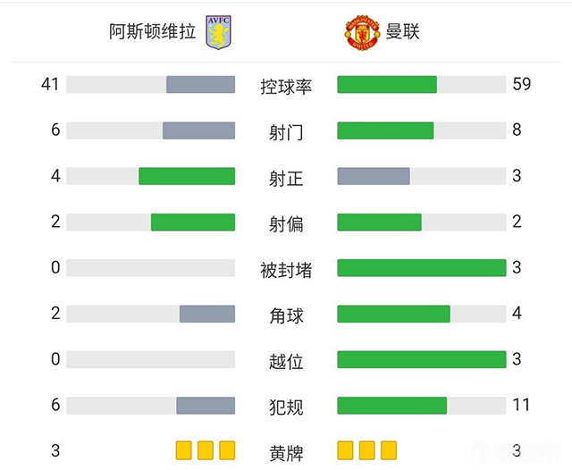 全场比赛结束,曼联1-3不敌维拉。
