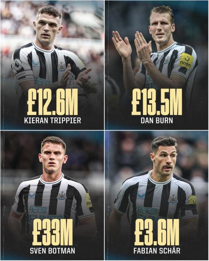 JRS直播网11月04日讯 消息,纽卡斯尔本赛季英超只丢10球,他们的后防线只花了6270万英镑,不到一个马奎尔的转会费。