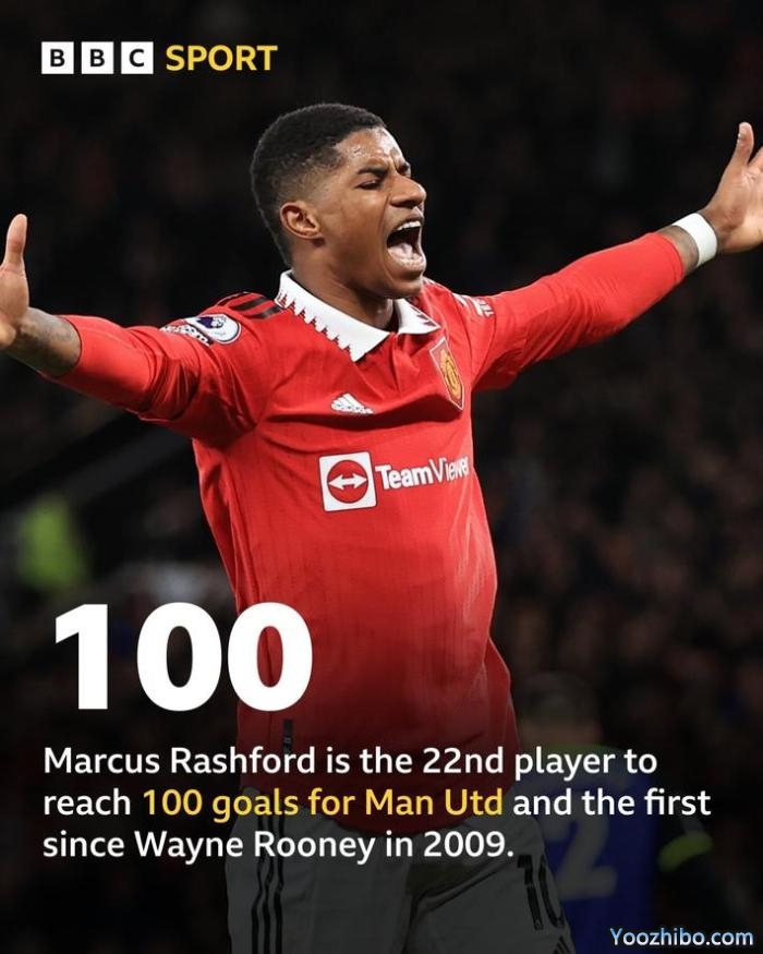OPTA统计表明,拉什福德是曼联队史第22位百球先生,也是自2009年的鲁尼以来,首位达此成就的球员。