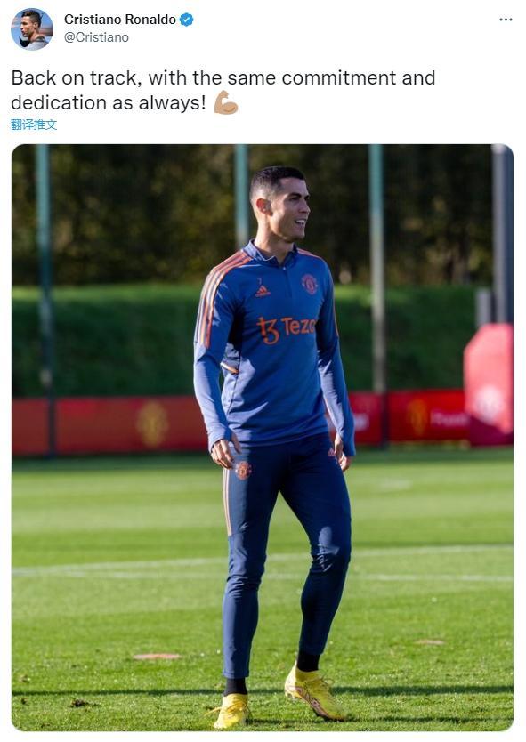 今天C罗在社媒上晒出一张自己的训练照,并写道:“回到正轨,一如既往的承诺和奉献精神!”