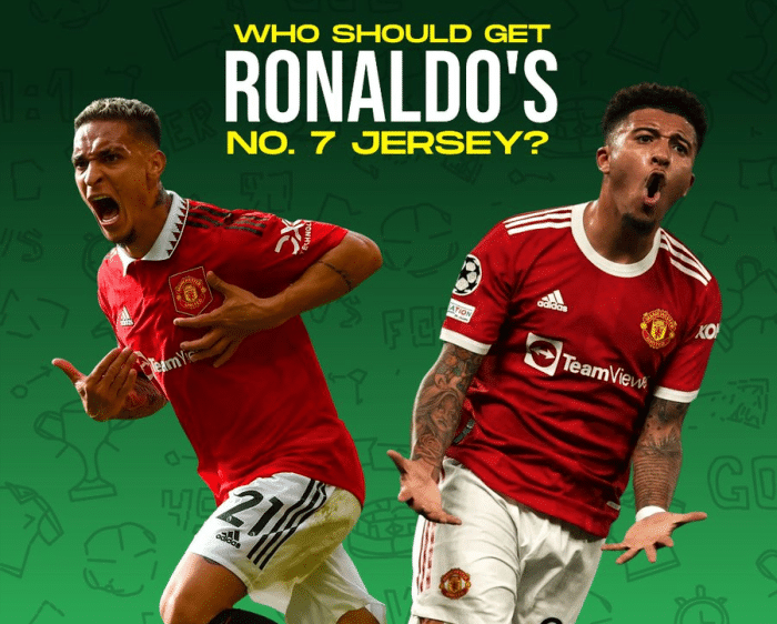 在曼联阵中,被认为可能与桑乔竞争7号球衣的,是1亿欧元先生安东尼,后者曾在圣保罗和巴西国青短暂穿过7号。也有红魔拥趸提出了解决方案,让安东尼得到梅森·格林伍德的11号球衣,桑乔就可以获得心仪的7号。但无论如何,英格兰边锋必须提升自己的表现水平和稳定程度,否则哪怕他得到了这个传奇的号码,恐怕也将步迈克尔·欧文、安东尼奥·瓦伦西亚、迪马利亚、孟菲斯·德佩、桑切斯等人的后尘,成为新一代曼联失败的7号球衣主人。