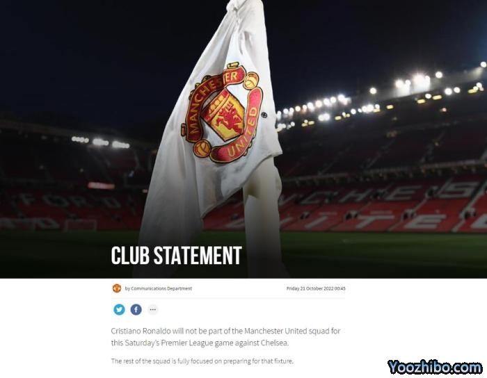 JRS直播网10月21日曼联官方消息,C罗本周六将不会随队出征切尔西。