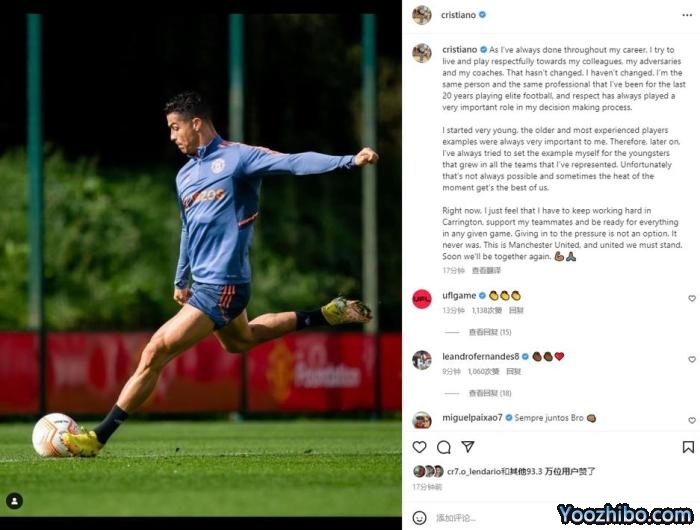 JRS直播网10月21日在被曼联停赛停训后,C罗今天在社交媒体上发布长文,表示自己一直尊重队友和教练。