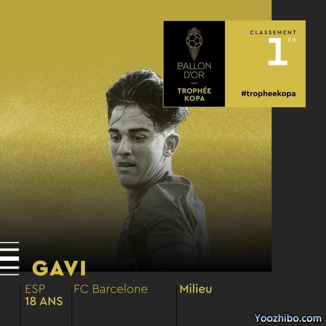 加维击败了穆夏拉、阿德耶米、卡马文加、努诺-门德斯、萨卡、贝林厄姆等人,巴萨也成功蝉联该奖项,2021年科帕奖得主是巴萨另外一位新星佩德里。