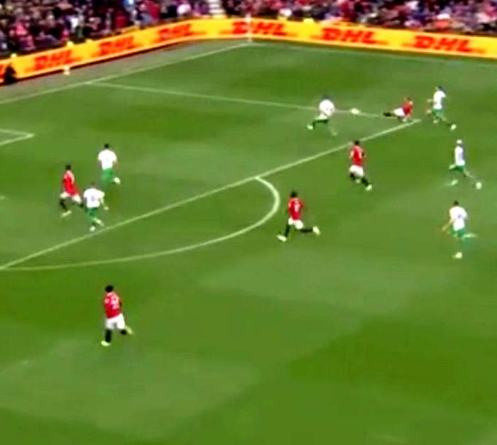 1亿欧元边锋安东尼曾在右路创造极好的传中机会,但他非要把球传给远端抢点的C罗,但事实上,交给更靠近自己、无人防守的布鲁诺·费尔南德斯和弗雷德,效果会更好。