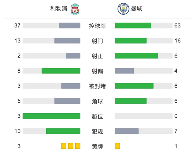 全场比赛结束,利物浦最终主场1-0战胜曼城。