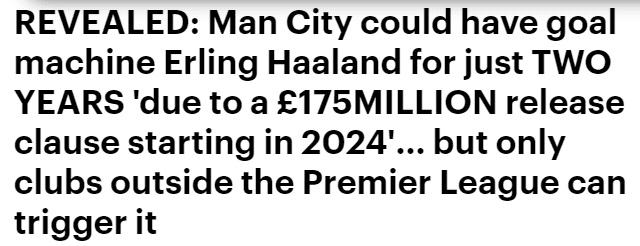 JRS直播网10月12日TA消息,曼城球星哈兰德的合同中一个2亿欧元的违约金条款,且只对英超以外的俱乐部生效。