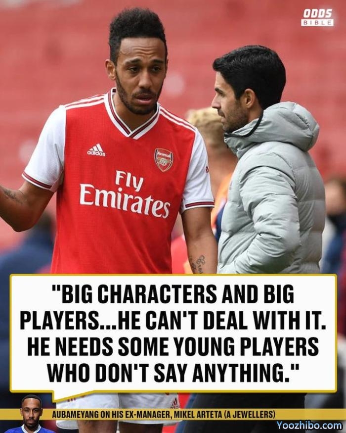 JRS直播网10月11日消息,切尔西前锋奥巴梅扬评价前主帅阿尔特塔时称,他管理不了大牌球员。