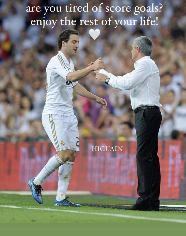 JRS直播网10月04日讯 凌晨,34岁的阿根廷传奇射手伊瓜因宣布将在赛季结束后退役。而昔日恩师穆里尼奥,也第一时间晒照送上自己的祝福。穆帅晒出了两人在皇马时期握手的照片,并动情写道:“你对进球感到厌倦了吗?那就去享受接下来的人生吧!”