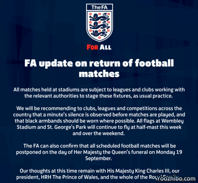 JRS直播网09月14日因为女王的去世,英超第7轮的比赛已经全部延期,本周能否恢复,依旧是未知数。上周女王去世,英足总表示女王是英足总的长期赞助人,决定推迟9月9日至11日的所有足球比赛,同时9月19日女王葬礼当天,所有预定的足球比赛将被推迟。这样的决定也获得了外界的支持,但唯独有一支顶风作案,居然无视女王去世的停赛禁令,坚持比赛。