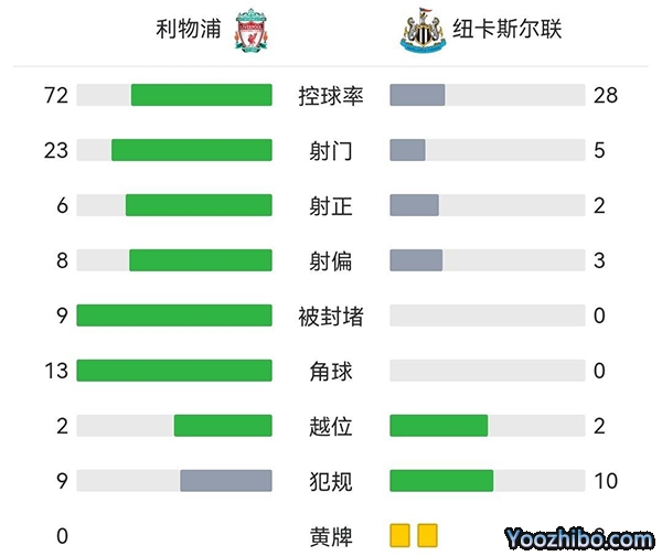 全场比赛结束,利物浦2-1纽卡斯尔!
