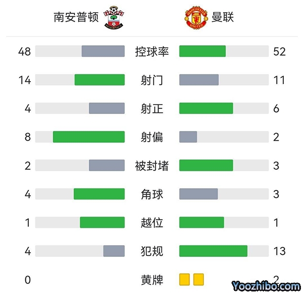 全场比赛结束,南安普顿0-1曼联!
