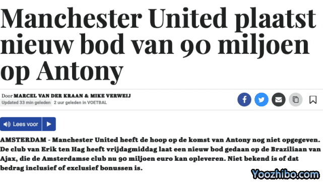 JRS直播网08月27日讯,来自荷兰电信报著名记者Mike Verweij的最新消息,英超豪门曼联俱乐部已经向阿贾克斯提出了第3份报价求购安东尼。