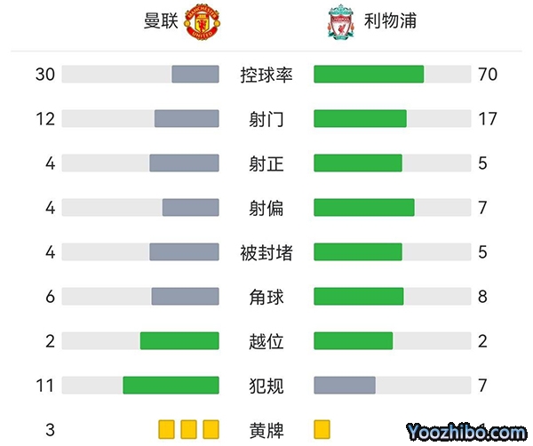 全场比赛结束,曼联主场2-1战胜利物浦。