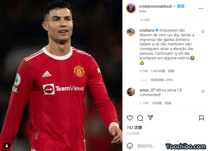 JRS直播网07月29日讯 今天,C罗在Instagram的一个球迷号下方评论,他表示媒体一天不谈论自己,就赚不到钱。