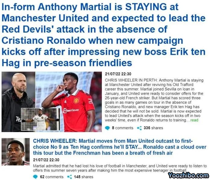 现在,C罗不在,马夏尔在曼联锋线上独树一帜,他踢得春风得意马蹄疾。然而,若葡萄牙巨星留队,又或者滕哈格引进新的前锋,他会有怎样的反应?这还有待观察。