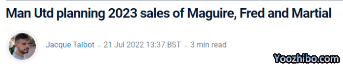 JRS直播网07月22日讯 消息,记者JacqueTalbot披露,曼联计划在2023年夏窗出售马奎尔、马夏尔和弗雷德等球员。
