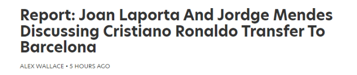切尔西拜仁都与C罗传出了绯闻,但《阿斯报》表示,巴萨主席拉波尔塔也加入战局,与门德斯探讨了C罗加盟巴萨的可能性。