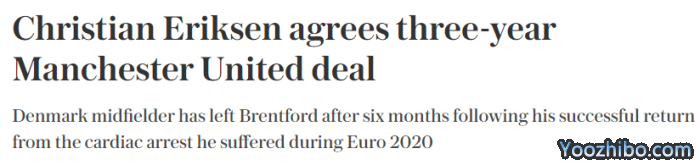 根据此前消息,埃里克森已经口头承诺加盟曼联,双方将签约3年,这位丹麦国脚现在是一名自由球员。